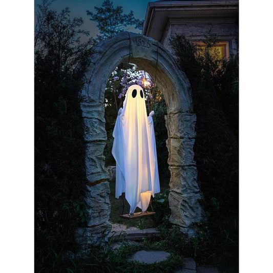 Halloween Decorations Outdoor - 5 FT Large Hanging Swing Ghost Halloween Decor with String Lights - Spooky Cute Ghosts Decorations for Front Porch Yard Tree